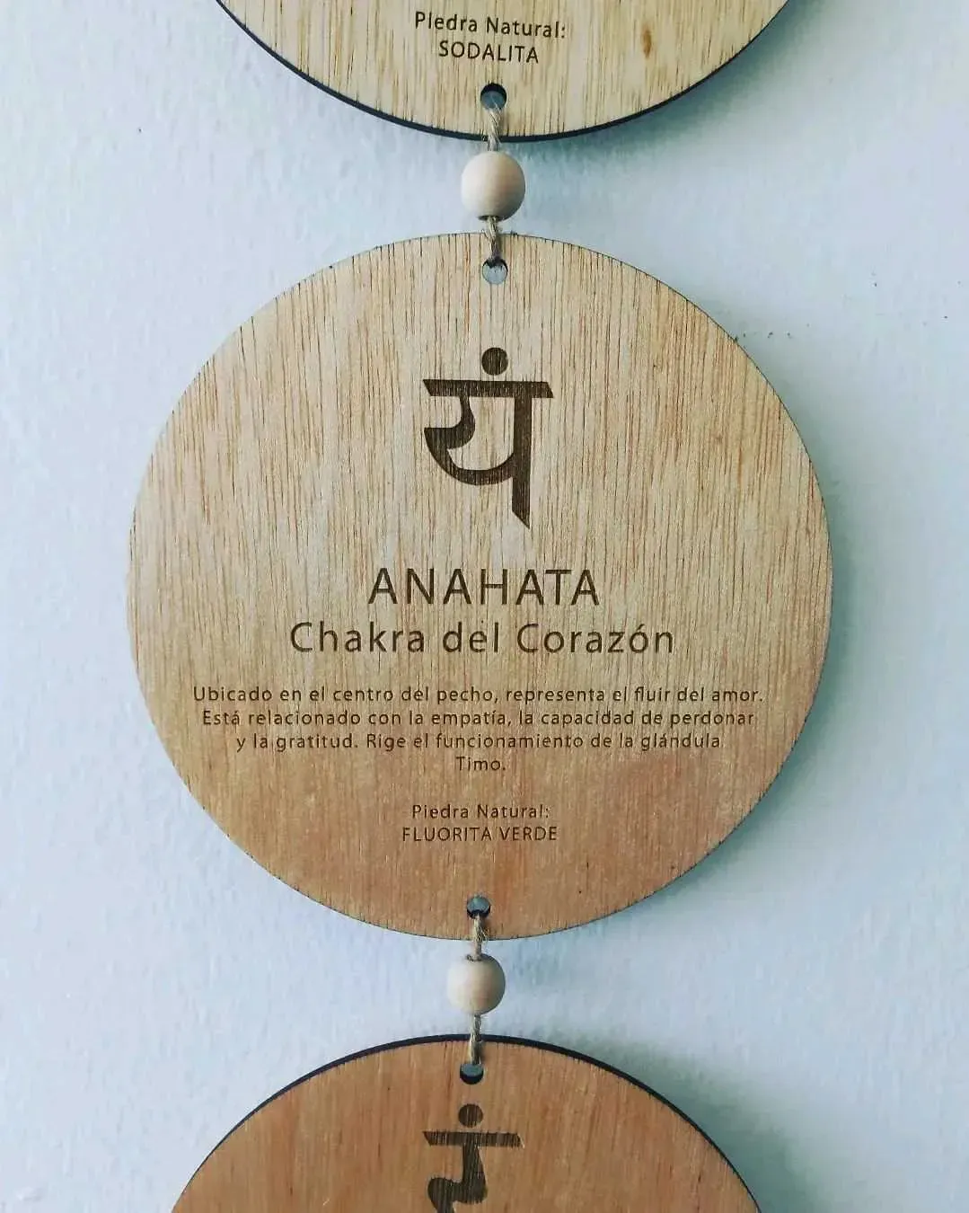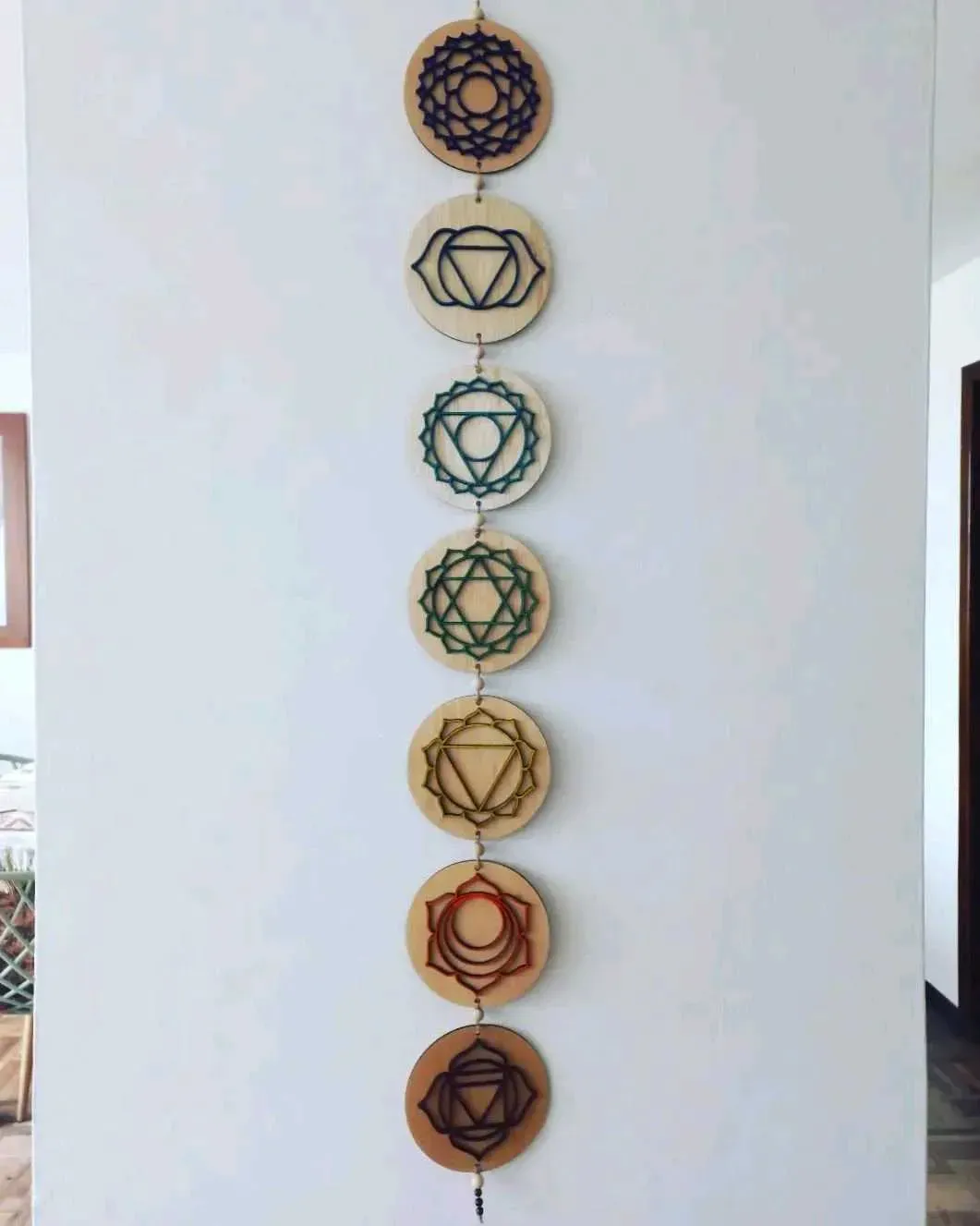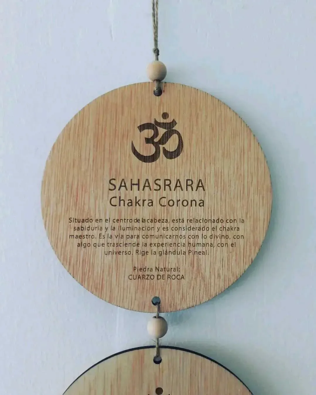 Nuestros móviles decorativos de madera están diseñados con cuidado y amor, incorporando los colores, símbolos y significados asociados a cada chakra.